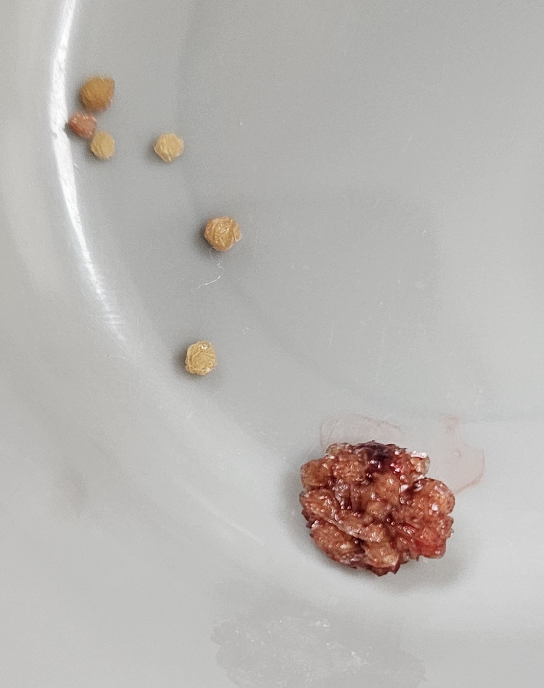 Uroliths removed from bladder prior to being sent to the Minnesota Urolith Center for testing.